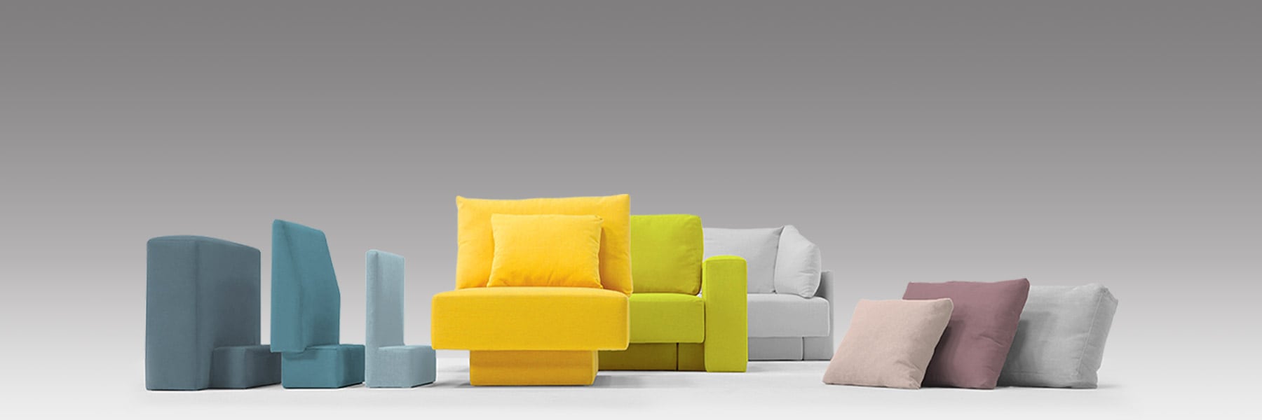Cada conjunto de sofás FEYDOM é um sistema modular composto por vários elementos.